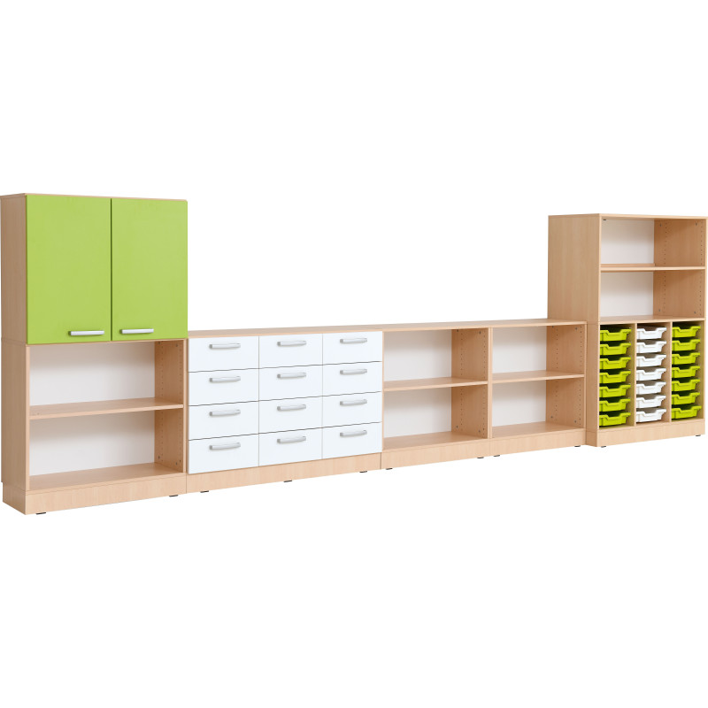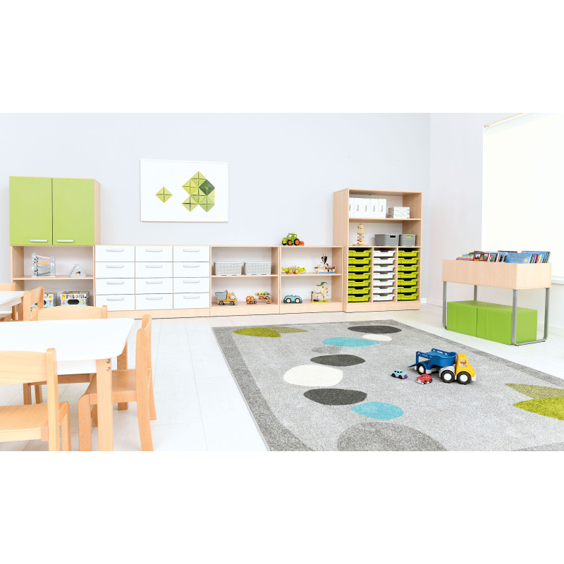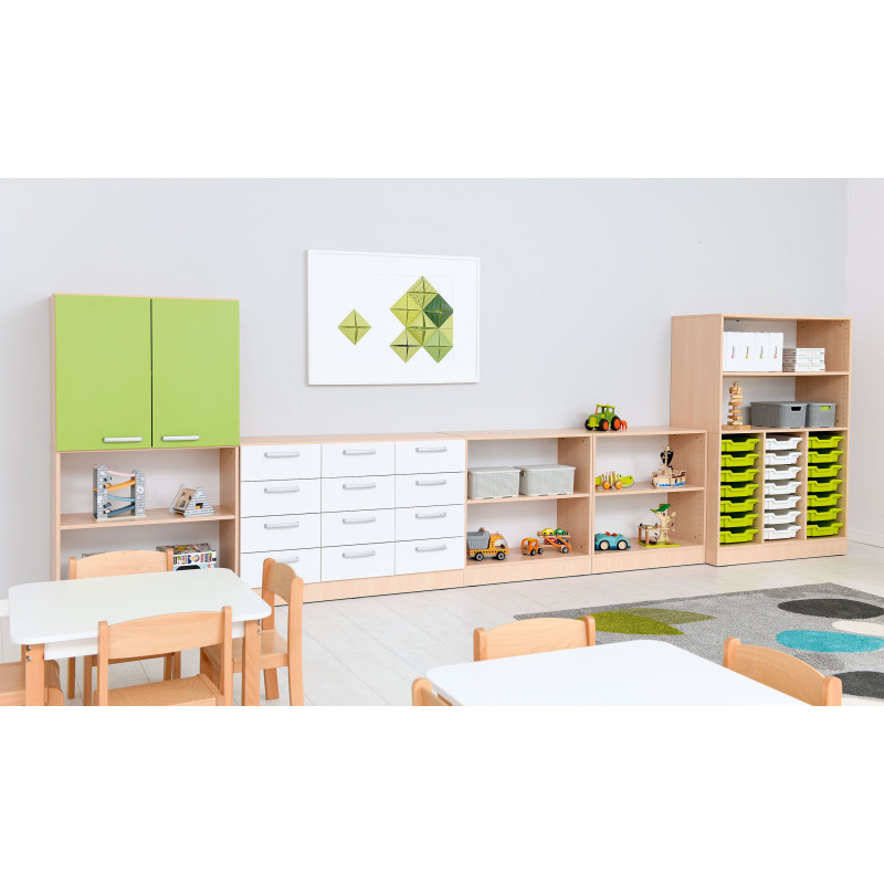 Šis funkcionalus ir estetiškas baldų komplektas sukurtas patogiam daiktų laikymui ugdymo įstaigose. Dėl modulinės konstrukcijos spintelės lengvai pritaikomos įvairioms erdvėms, užtikrinant tvarką ir ergonomišką naudojimą.