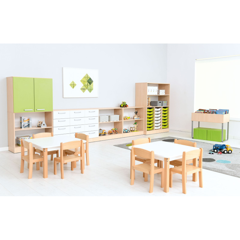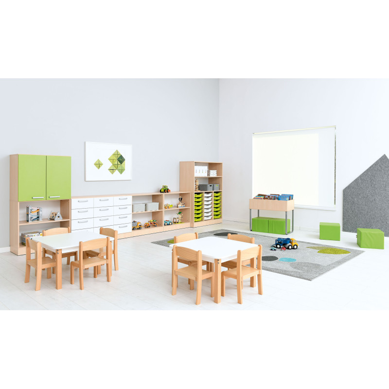 Šis komplektas puikiai tinka darželiams ir mokykloms, kur svarbus patvarumas, funkcionalumas ir modernus dizainas.