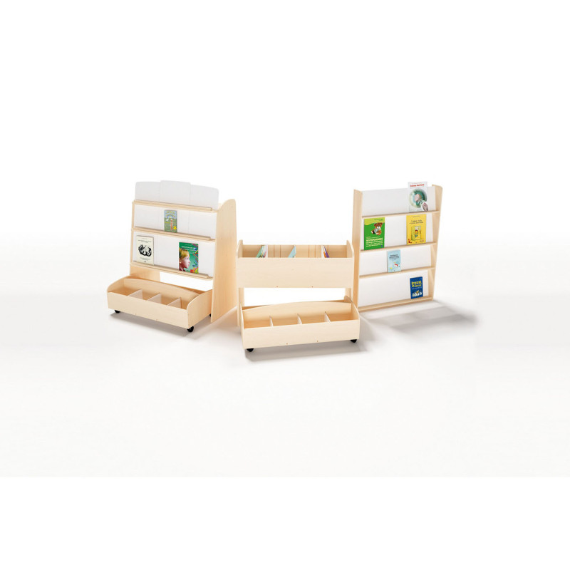 Bibliotēka ir izgatavota no laminētas skaidu plātnes.
