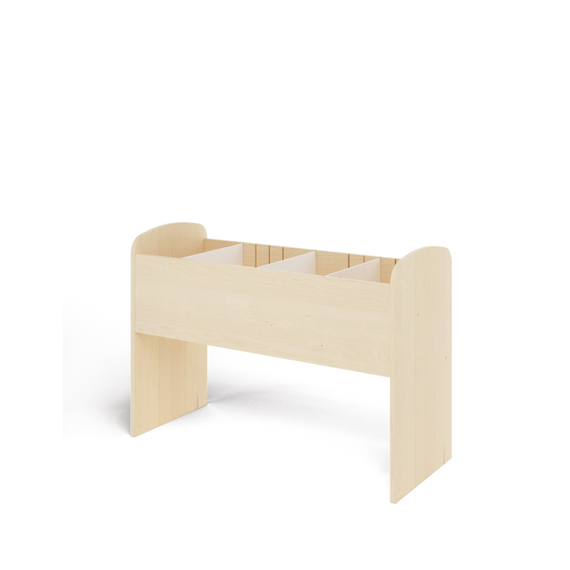 Pastatoma knygų lentyna su keturiomis nišomis, puikiai tinkanti knygoms ir kitiems daiktams laikyti. Pagaminta iš beržo spalvos medžio drožlių plokštės, papildyta trimis baltos spalvos MDF lentynomis, kurių aukštį galima reguliuoti, taip suteikiant lankstumo organizuojant erdvę. Puikiai tinka bet kokiam interjerui, derindama funkcionalumą ir estetiką.