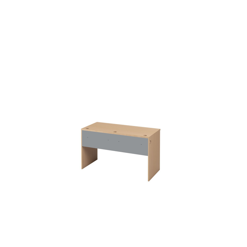 Stalviršis pagamintas iš 25 mm storio aukštos kokybės laminuotos medžio drožlių plokštės, beržo spalvos, atsparios kasdieniam dėvėjimuisi. Stalo šonai – iš 18 mm storio laminuotos plokštės, taip pat beržo spalvos. Konstrukciją papildo pilkos spalvos 18 mm storio laminuotos detalės, suteikiančios baldui vientisą ir modernią išvaizdą.