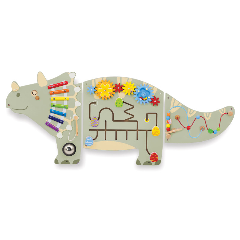 Dinozauro formos medinė sieninė manipuliacinė lenta – lavinantis žaidimas mažiesiems tyrinėtojams
