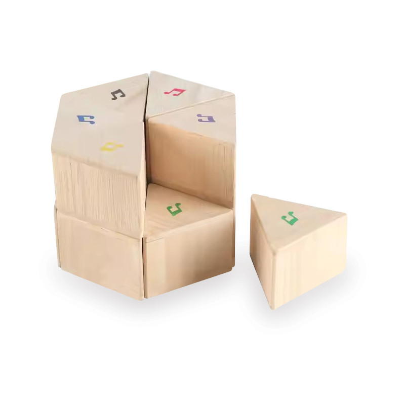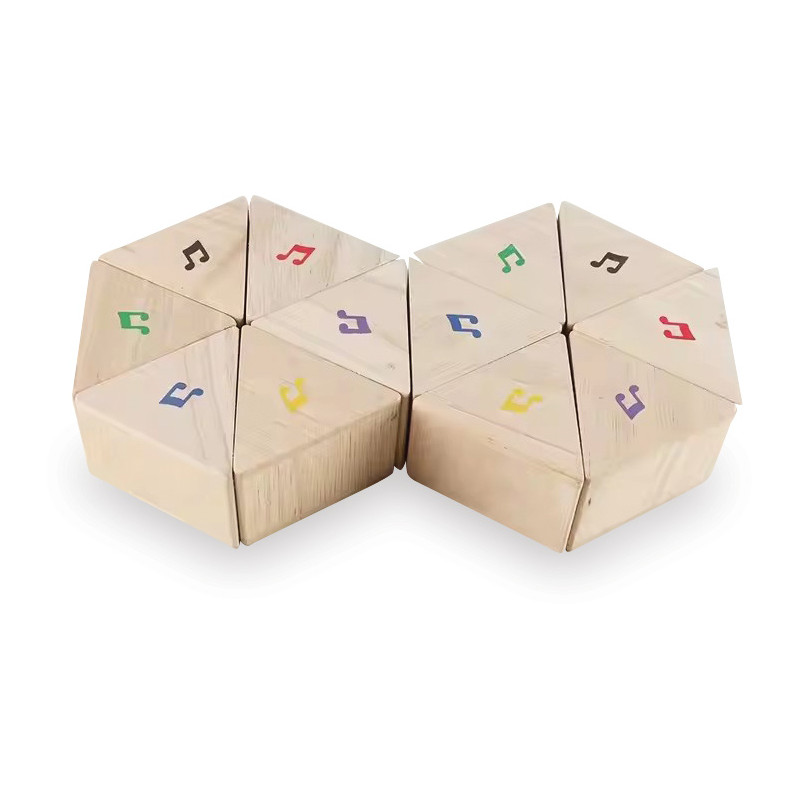 Ant kaladėlių pavaizduoti įvairūs muzikos simboliai, kurie padeda derinti garsus, spalvas ir raštus, taip lavinant kūrybiškumą bei sensorinius gebėjimus. Žaidimas su kaladėlėmis taip pat ugdo dėmesio koncentraciją ir skatina savarankišką tyrinėjimą.