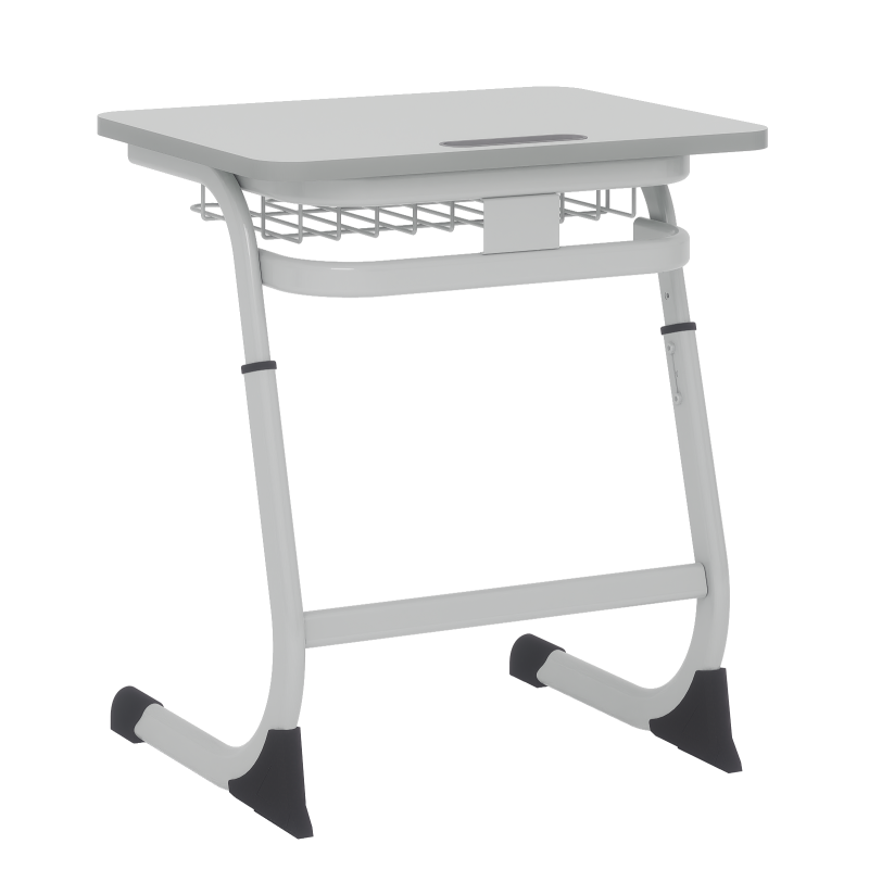 Stalo metalinis rėmas pagamintas iš plokščiai ovalaus vamzdžio ir padengtas smūgiams atspariais polimeriniais milteliniais dažais. Stalviršis pagamintas iš 22 mm storio, pilkos spalvos laminuotos medžio drožlių plokštės . Stalviršio kraštai nulieti iš poliuretano. Ypač atspari ir ilgaamžė briauna. Į stalviršio viršutinę plokštumą įmontuota plastikinė dėžutė rašymo priemonėms.