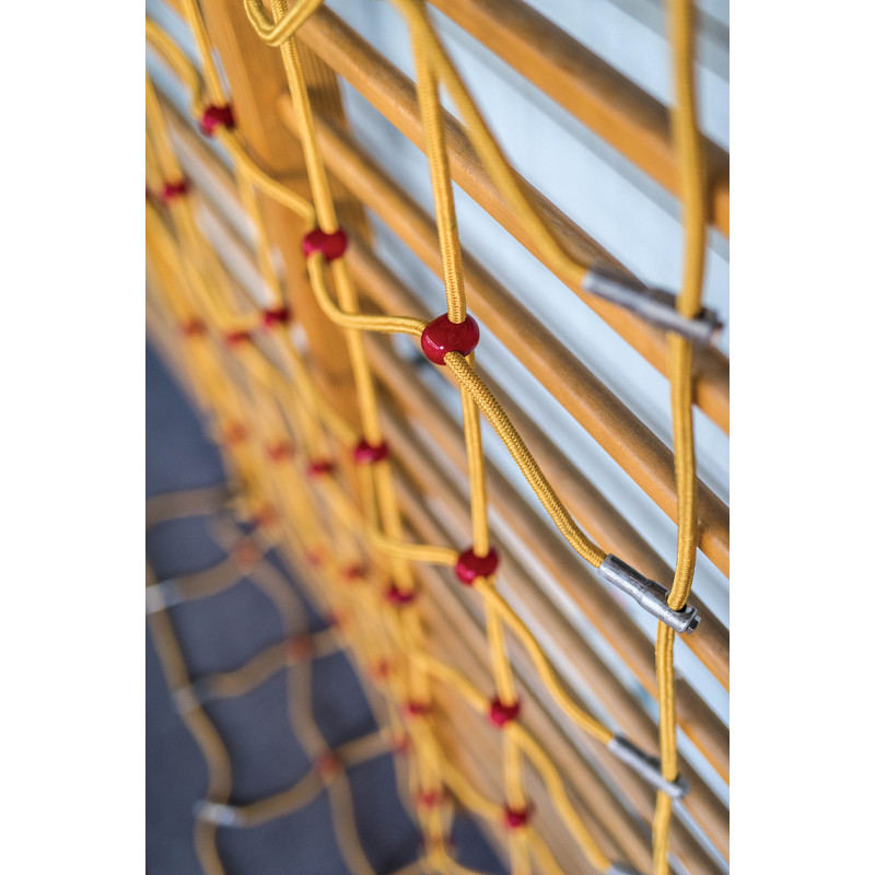 Laipiojimo tinklas pagamintas iš storos plieninės virvės su tvirtais sujungimais ir dideliais tinklo akių tarpais (30 x 30 cm). Tai puiki priemonė gimnastikos pratimams, lavinanti jėgą, vikrumą ir judesių koordinaciją. Jį lengva pakabinti ant medinio arba metalinio rėmo, sukuriant erdvę laipiojimui ir judriems žaidimams.