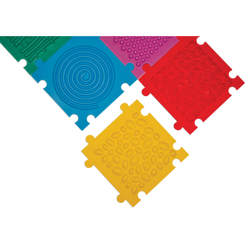 Kiekvienas kilimėlis pasižymi skirtinga faktūra, kuri stimuliuoja lytėjimo pojūtį ir padeda lavinti vaikų pusiausvyrą, koordinaciją bei kūno suvokimą. Tai universali priemonė, tinkanti tiek aktyviems žaidimams, tiek raminantiems sensoriniams pratimams ar terapiniams užsiėmimams.